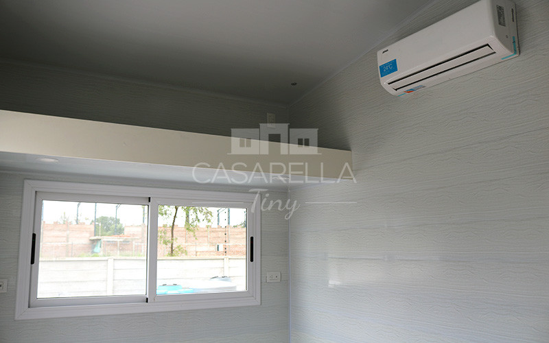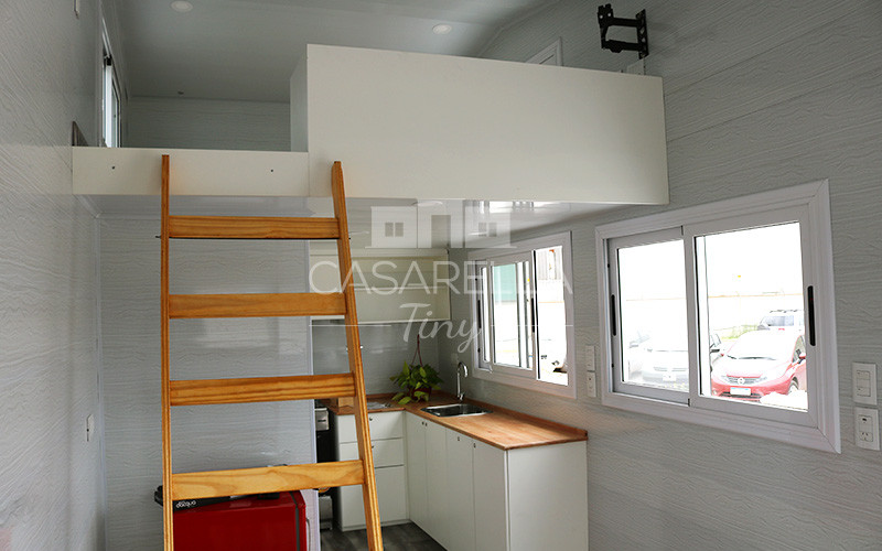 Se compraron la heladera antes que la casa. La Tv ya la tenían. Luego compraron el calefón y la cocina. Como nuestras Casarella Tiny tienen un diseño adaptable, cambiamos los muebles y sacamos la escalera a pedido de ellos. Agregamos un entrepiso para que duerman sus nenas arriba. Eligieron el color del piso, de los muebles y del siding.